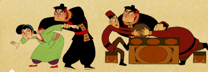 角色造型采用带明显戏曲元素的中国传统造型,简洁夸张,曲线造型。角色动作柔韧夸张,动作姿态多采用戏曲动作