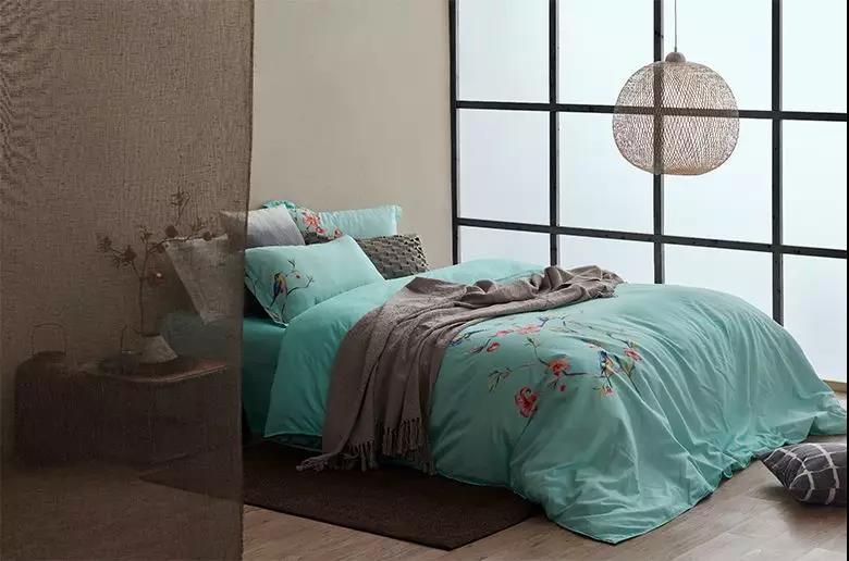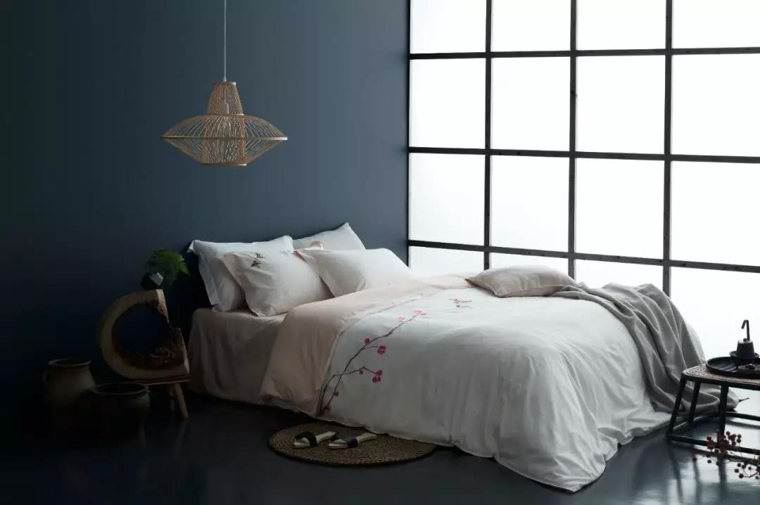 花鸟是中国人喜爱的图案,也被广泛运用在四件套上,渲染喜庆的气氛。而大朴的花鸟另辟蹊径,非但没有繁花似锦,反而是大片留白,希望给卧室营造一种沉静之美。